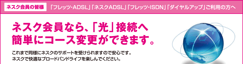 NTT光工事が完了しましたら、新しいIDでインターネット接続の設定をしていただければ接続可能です。 |